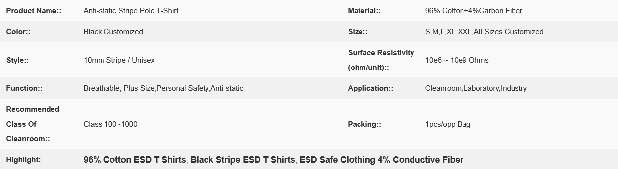 ESD T-shirts Black Stripe Unisex 96% Cotton+4% Conductive Fiber Antistatic Working Polo Shirts
