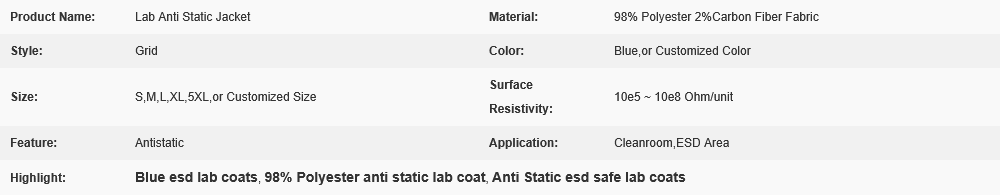 Blue Lab Anti Static Grid 98% Polyester 2% Carbon Fiber Fabric Jacket