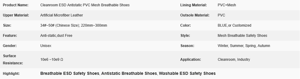 | Cleanroom ESD Antistatic PVC Mesh Breathable Shoes | |