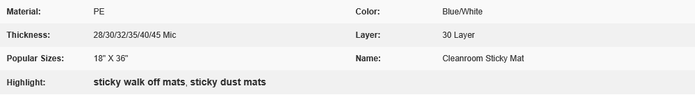 Blue White Disposable PE Cleanroom Sticky Mat 30 layers High Tackiness 18″ x 36″