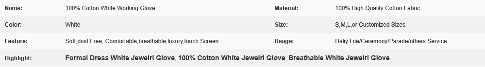 Breathable 100% Cotton White Jewelri Glove Ceremony Parade Honor Guard Formal Dress Gloves