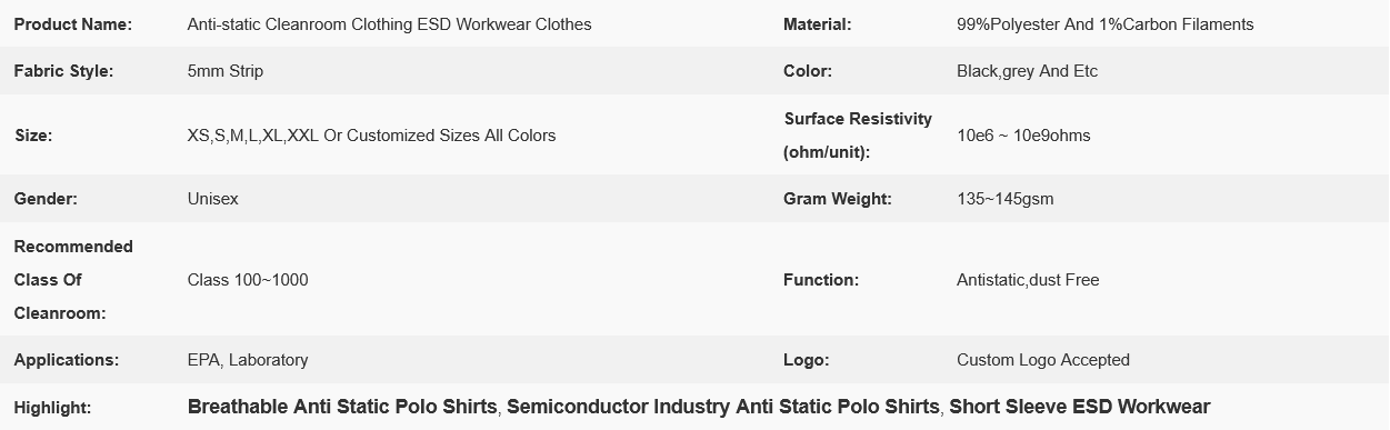 Breathable Short Sleeve Anti Static Polo Shirts For Semiconductor Industry