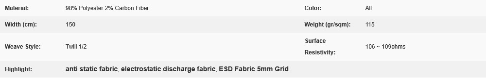 Description: Anti-static ESD Woven Polyester Fabric, 5mm Grid