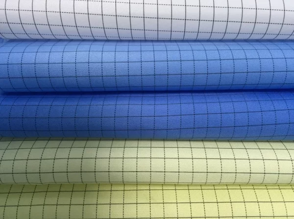 Clean Room ESD Fabric Woven Polyester Fabrics 5mm Grid White Blue Yellow Color