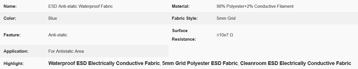 Cleanroom 5mm Grid Polyester Anti-static Waterproof ESD Electrically Conductive Fabric