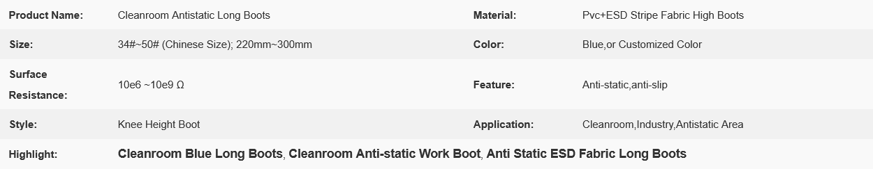 Cleanroom Blue Anti-static Work Boot 5MM Stripe ESD Fabric Long Boots