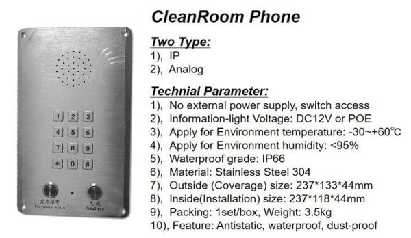 Cleanroom Consumables Handsfree Telephone Stainless Steel 304 0Cleanroom Consumables Handsfree Telephone Stainless Steel 304 1Cleanroom Consumables Handsfree Telephone Stainless Steel 304 2