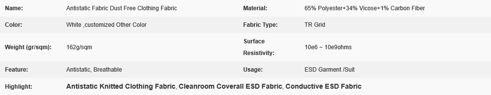 | Applications: | for ESD Workwear,Dust Free Clothing |