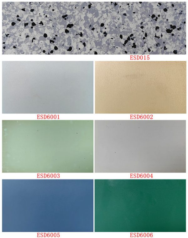 ESD antistatic PVC vinyl flooring tiles are available in various sizes and styles, including interlocking tiles that can be easily installed without the need for adhesives. They are also durable, easy to clean, and resistant to wear and tear. Some flooring tiles also have a textured surface that provides slip resistance and improves traction, reducing the risk of accidents and injuries.