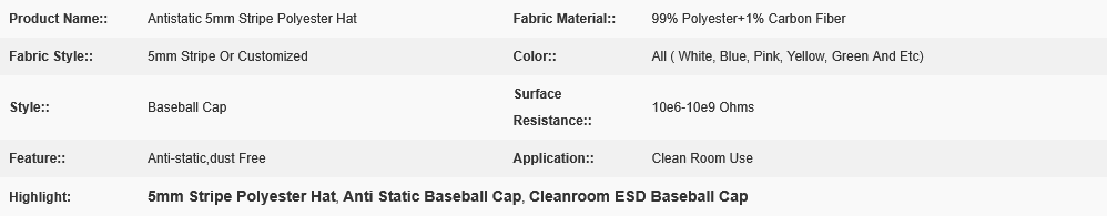 Cleanroom ESD 5mm Stripe Polyester Hat Dust Free Work Anti Static Baseball Cap