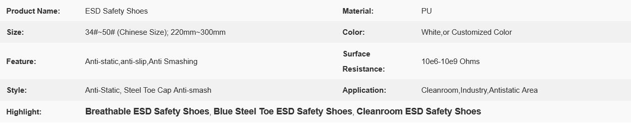 Cleanroom ESD Antistatic Safety Shoe Blue Steel Toe Breathable Anti Static Shoes