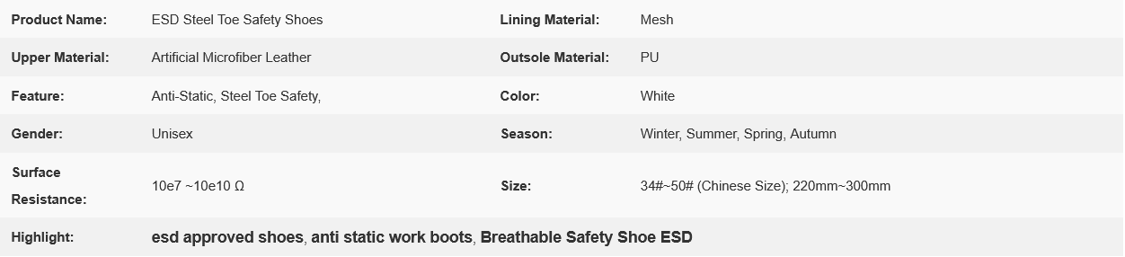Cleanroom ESD Antistatic White Steel Toe Breathable Safety Shoe ESD Anti-static Shoes