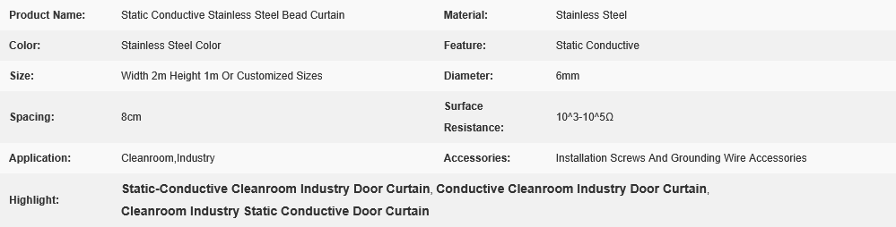 Cleanroom Industry Static Conductive Door Curtain Made Of Stainless Steel Beads For Conductivity