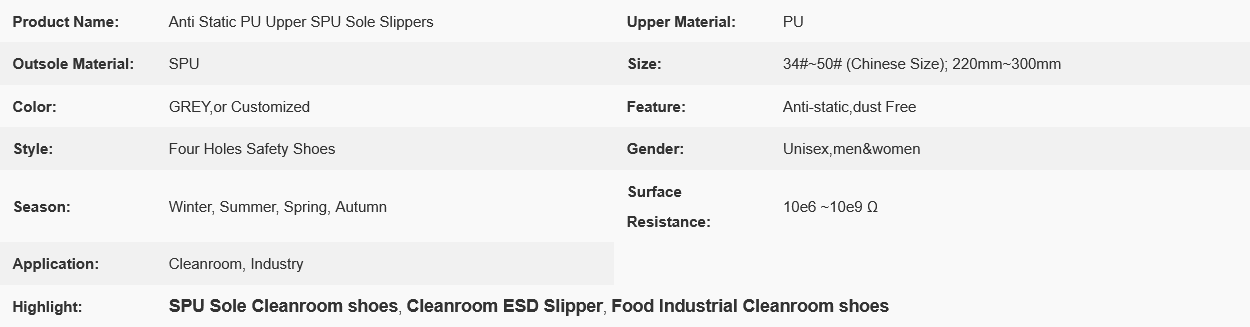 1.The Anti Static PU Upper SPU Sole Slippers feature a combination of an anti-static PU (Polyurethane) upper and an SPU (Self-Polyurethane) sole, making them suitable for environments where ESD protection is crucial.