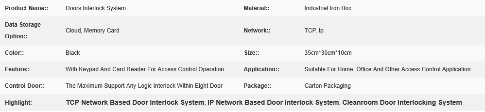 | Doors Interlock System introduce: | Intelligent two-door access controller is our new product, which is specially suitable for bank interlock access control system. The controller is provided with strong network function, absolutely suitable for high degree intelligent residential district, bank, intelligent building, prison, government, business office, military telecommunication management, field unmanned base-station management. All the parameters of the device absolute set by computer software, convenient operation and management. |