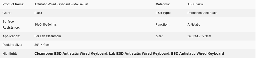 Cleanroom Use ESD Black ESD Antistatic Wired Keyboard Mouse Set for Lab
