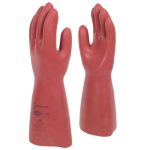 Class 0 electrical insulating natural rubber latex gauntlet, 41cm with cut edges. These gloves provide three-in-one protection, combining dielectric, mechanical and thermal (arc flash) resistance. The specifically formulated outer coating provides exceptional grip, even in humid or greasy conditions.
