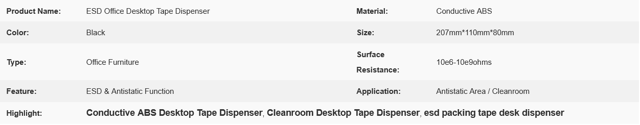 ESD Office Desktop Tape Dispenser Products Description: