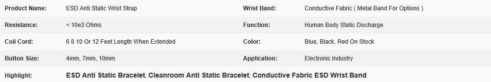 ESD Anti static Wrist Band Blue Anti-static Bracelet Wrist Strap for Cleanroom