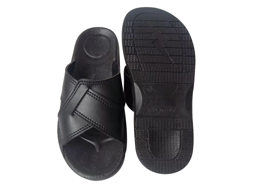 Cross Type ESD Safety Shoes Antistatic PU Slipper Thick Sole Black Environmental Friendly