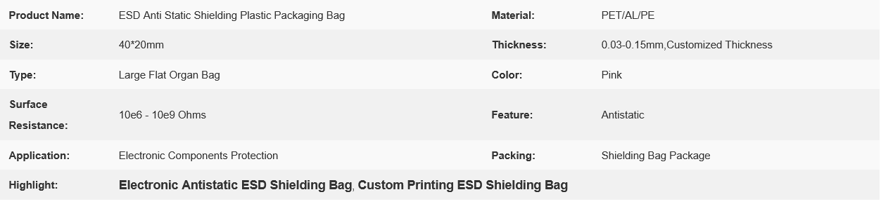 Custom Printing ESD Shielding Bag Electronic Antistatic PE Packaging Pack ESD Bags