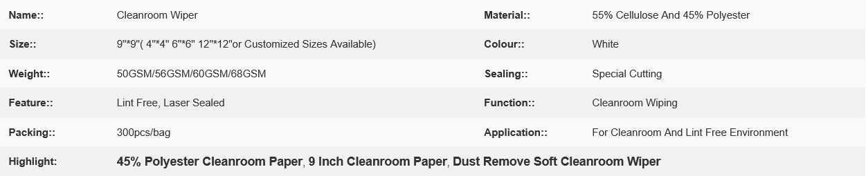 Customized Size Polyester Soft Cleanroom Paper 9 X 9 Inch For Dust Remove