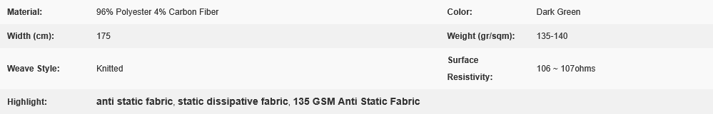 - Other ESD Fabric: Antistatic TC and CVC fabric, Antistatic knitted diamond fabric, Antistatic knitted fabric, Antistatic polyester stripe fabric,
