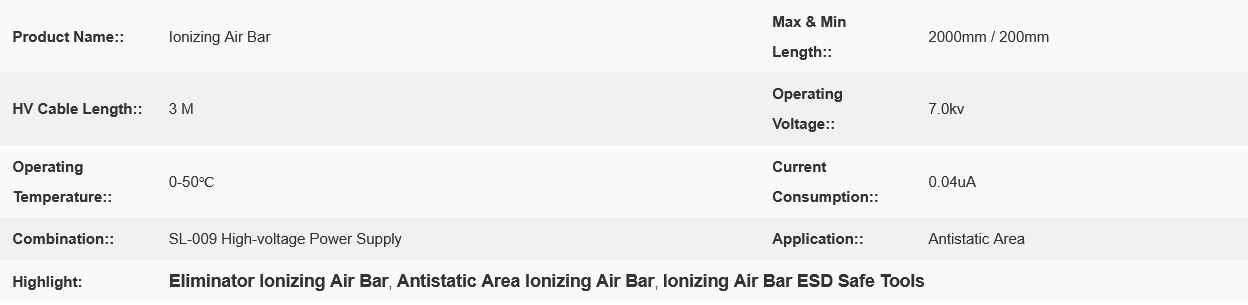 Discharge Eliminator Ionizing Air Bar For Antistatic Area