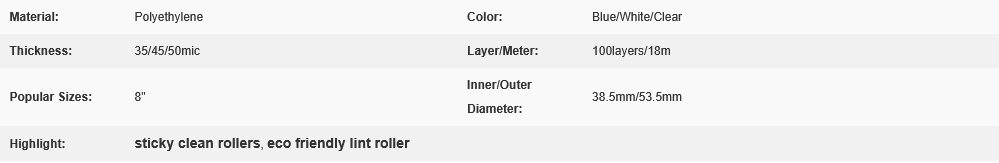 Sticky rollers are composed of polyethylene sheets coated with acrylic-based adhesive, which can be fast, efficient and easy to remove dust and particle.