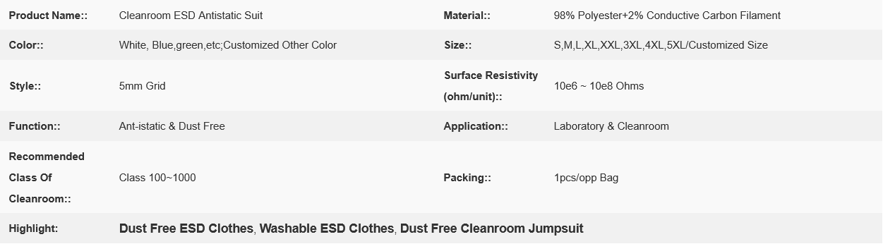 | Cleanroom ESD Garment | |