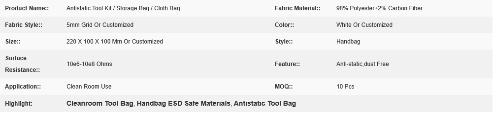 Cleanroom Use Dust free Antistatic 5cm Gird Small Parts Handbag Tool Bag