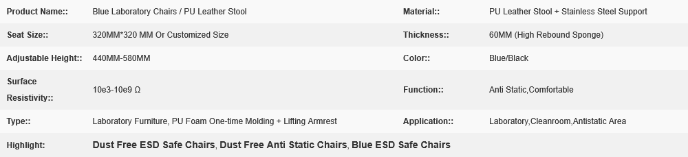 Dust Free ESD PU Anti Static Chairs Blue Adjustable Height