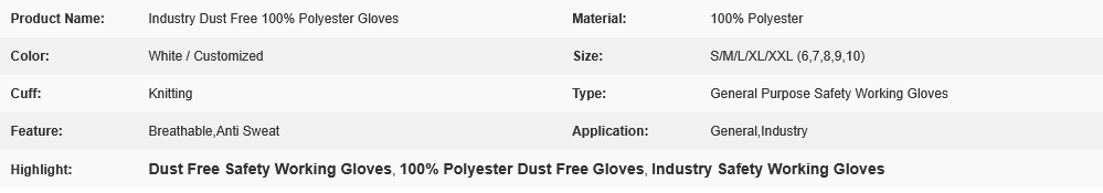 | Product name | Industry Dust Free 100% Polyester Gloves |
