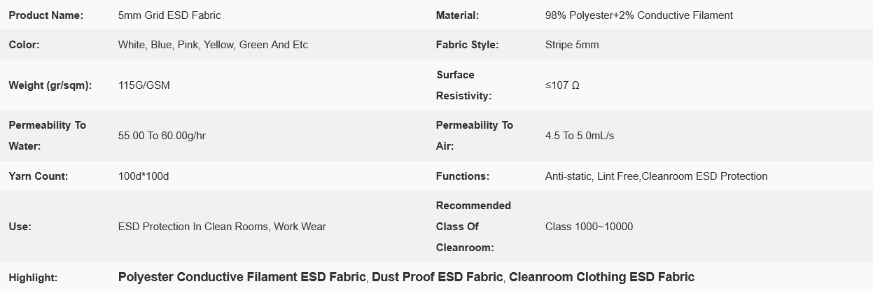 Top Quality Industry Use Dust Proof Polyester Anti Static Cleanroom 5mm Grid ESD Fabric for Clothing