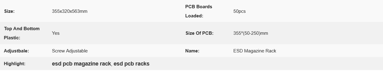 Easy Operation ESD PCB Magazine Rack TopAnd Bottom Plastic Screw Adjustable
