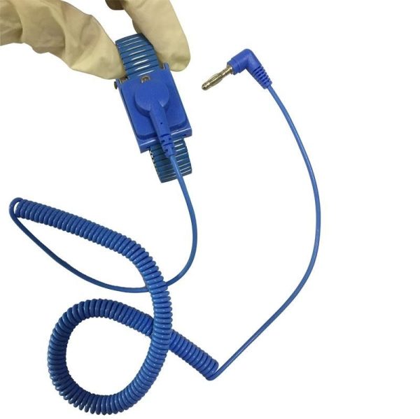 The wrist strap is usually worn on the nondominant hand.It is connected to ground through a coiled retractable cable and 1 meg ohm resistor, which allows high-voltage charges to leak through but prevents a shock hazard when working with low-voltage parts ” from Wikipedia
