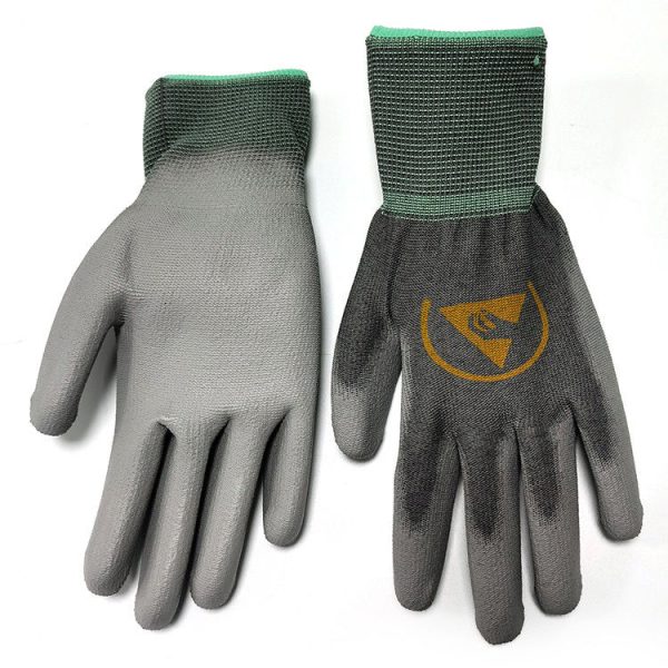 Gery ESD Anti-static PU Palm Fit Gloves Safe Working Gloves