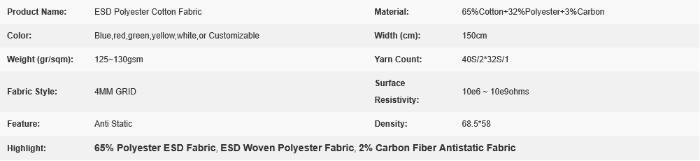 ESD 4MM GRID Fabric 65% Polyester+33% Cotton+2% Carbon Fiber Antistatic Fabric