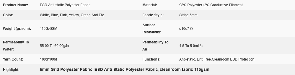 ESD Anti Static 5mm Grid Cleanroom Polyester Fabric 115GSM
