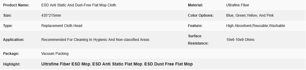 ESD Anti Static and Dust-Free Flat Mop Ultrafine Fiber Replacement Cloth Head