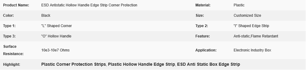 ESD Anti Static Box Accessories Plastic Hollow Handle Edge Strip Corner Protection
