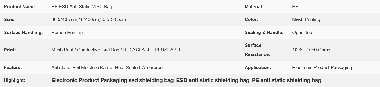 Product Name Anti-Static Mesh PE Bag