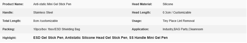 ESD Antistatic SS Handle Mini Gel Stick Pen With Silicone Head