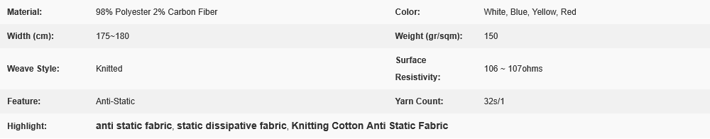 Description: Anti-static ESD Knitted Cotton Fabric