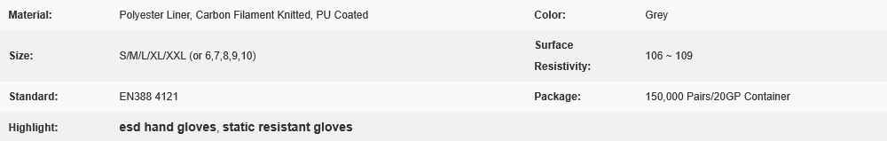 ESD PU Top Coated Anti Static Gloves Polyester Liner With Carbon Filament Knitted