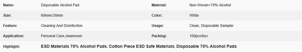 ESD Safe Materials 70% Alcohol Pads Disinfection Disposable