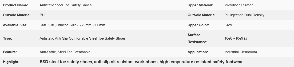 | Type | Antistatic Anti Slip Steel Toe Safety Shoes |