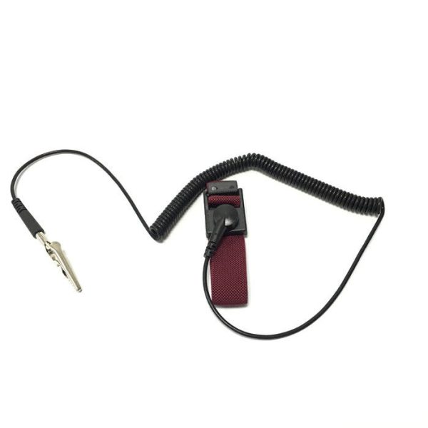 The wrist strap is usually worn on the nondominant hand.It is connected to ground through a coiled retractable cable and 1 meg ohm resistor, which allows high-voltage charges to leak through but prevents a shock hazard when working with low-voltage parts ” from Wikipedia