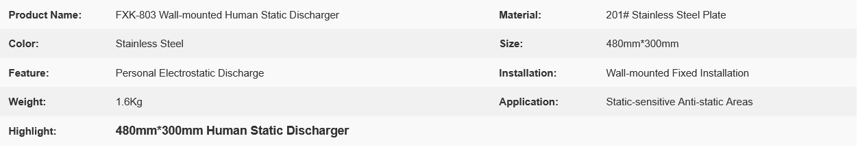 FXK-803 480mm*300mm Wall-mounted fixed installation Human Static Discharger