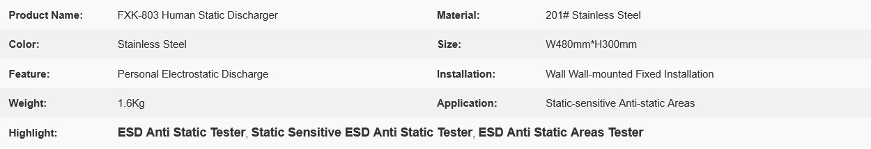 FXK-803 Human Static Discharger ESD Anti Static Tester W480mm*H300mm for Static-sensitive Anti-static Areas